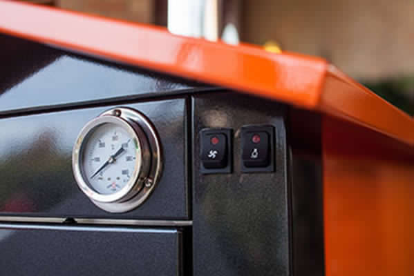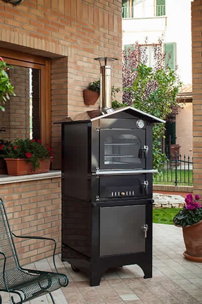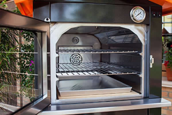 All SILVER wood-fired ovens have 3 cooking surfaces, are equipped with ventilation, and have internal light; in the outdoor version, the cart with wheels and retractable handles for easy moving is included.